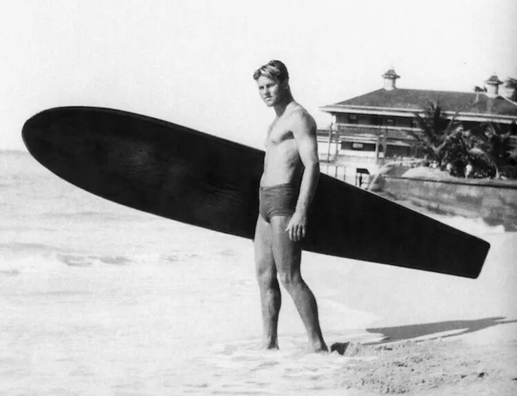 First of all, the earliest pioneer was Tom Blake. Specifically, he was a legendary waterman in the 1930s. Back then, Blake attached a 10-foot cotton rope from his board to his waist. Obviously, this was a very basic design. Additionally, it was somewhat dangerous. Still, it was the first real attempt to keep a board close.