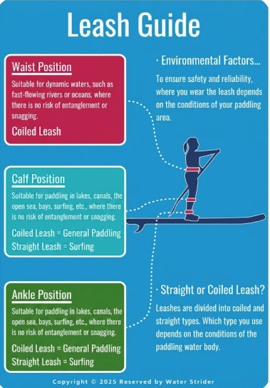 Lastly, we have the Waist Attachment. Usually, this features a special quick-release belt. Importantly, this setup is strictly for fast-moving water. For instance, whitewater paddleboarding absolutely requires this belt.