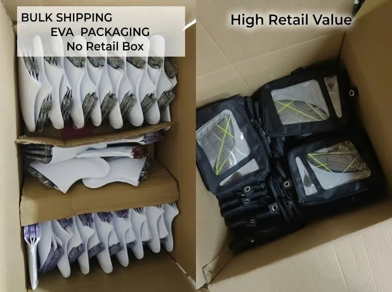 - Standard White EVA Blocks: Fins sit securely inside die-cut white foam. This is very safe and highly cost-effective. Moreover, it keeps volumetric weight extremely low for air freight.