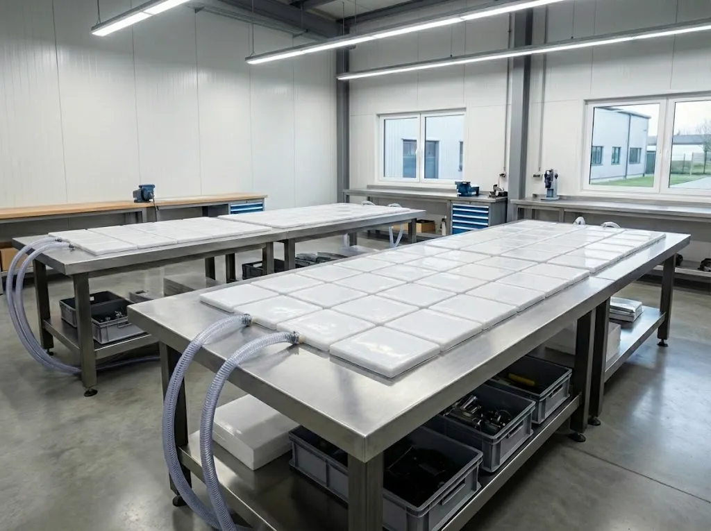 If a buyer orders 5,000 sets, waiting for one expensive metal mold to cycle through production is painfully slow. Instead, the factory achieves horizontal scaling. Because a silicone mold costs under $100, we simply duplicate the mold 20 or 30 times. By pouring resin into dozens of silicone molds simultaneously, production speed multiplies exponentially.