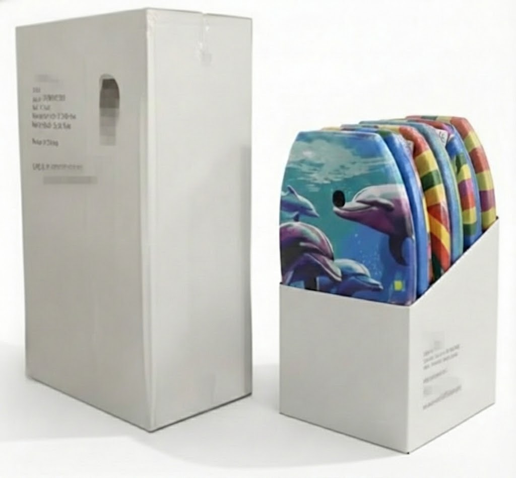 Many buyers default to requesting a printed inner PDQ tray packed inside a heavy-duty master carton. In the EPS bodyboard business, this over-packaging is a massive margin killer.
